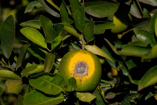 Comme de nombreux agrumiculteurs au Brésil,premier producteur d’oranges au monde,Elio La Laina doit faire face à l’avancée de la maladie du dragon jaune,aussi connue sous le nom de « greening »,dans ses cultures. Cette infection bactérienne transmise par un insecte qui s’alimente des bourgeons des orangers provoque l’assèchement des feuilles et une chute précoce des fruits.